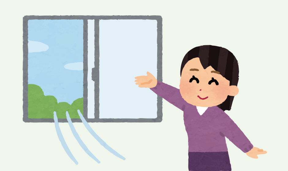 ではどのような対策を行えばエアロゾル感染を防げるのでしょうか。エアロゾル感染の対策は「十分な換気」を行うことで、ウイルスを保有するエアロゾルを停滞しないようにすることです。換気は1~2時間に1回10分程度行うことが理想です。冷房や暖房を使用する時期に新型コロナウイルス感染症が増加している事も、換気不足が一つの要因としてあるのかも知れません。