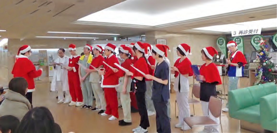 当日は3部構成で、研修医や職員有志による合唱、5階東病棟スタッフ有志による吹奏楽、医師による弦楽演奏が行われ、全6曲が披露されました。会場はやさしい音色に包まれ、来場された皆さまに、心温まるひとときとなりました。